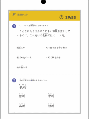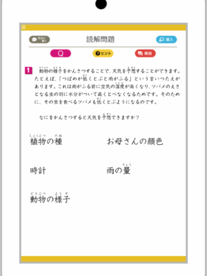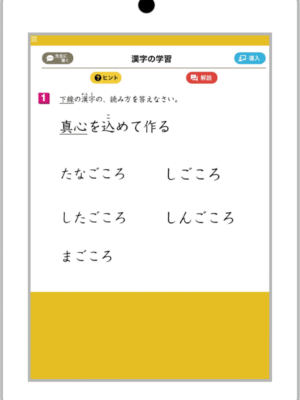 「言葉の世界」を広げ、読解力を養う 専用の学習アプリとテキストを連動させ、「読解」「漢字」「知識(文法)」を体系的に学びます。 iPS細胞など、近年話題になった時事問題も長文読解の題材として取り上げ、国語力を通じて社会への関心も育みます。また、漢字学習では、書き順や意味、熟語の使い方までを関連付けて効果的に学習します。